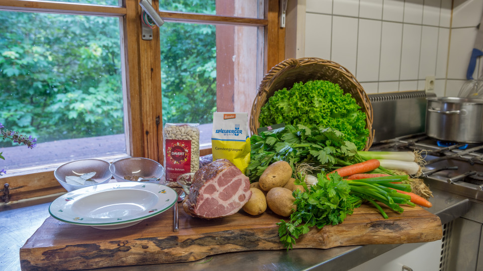 Eine österreichweite Umfrage ergab, dass 90 Prozent der Hüttenwirtinnen und -wirte ihr Fleisch regional beziehen, also in einem Umkreis von 100 km. 82 Prozent verwenden Obst und Gemüse aus der Region. 97 Prozent kochen und backen mit saisonalen Lebensmitteln wie Pilzen, Kürbis, Bärlauch sowie Beeren und Marillen. Frische Milchprodukte kommen in 81 Prozent der Hütten zum Einsatz. Nur Hütten in exponierter Lage müssen sich mit Haltbarmilch behelfen. Rund 50 Prozent der Hüttenbewirtschafter*innen bevorzugen biologische Lebensmittel; vor allem bei Milchprodukten, Obst und Gemüse wird großer Wert auf biologische Herkunft gelegt. In einem Viertel der Hütten werden ausschließlich Bio-Eier und in 50 Prozent der Hütten Eier aus Freilandhaltung verarbeitet. Auf Eipulver wird überall verzichtet.
