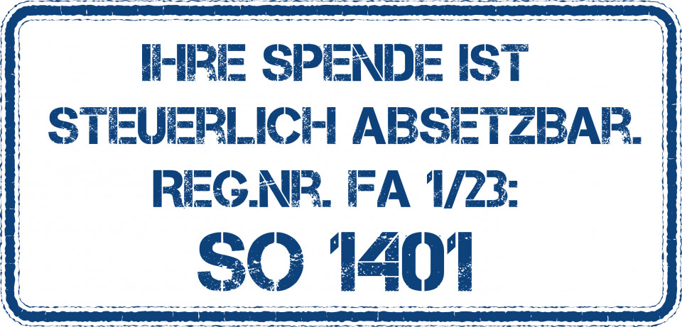 Diese Spende ist steuerlich absetzbar! Reg.Nr. FA 1/23, SO 1401