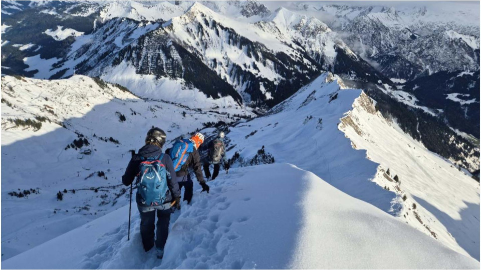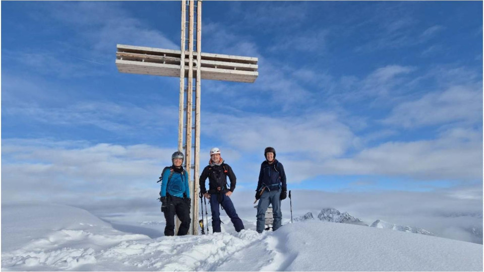 Am 29.11.2025 fand die lohnende Skitour der Naturfreunde Ortsgruppe Feldkirch auf das Glatthorn statt. Günther Schwarzmann und Doris Bergmair als Tourenführer und zwei motivierte TeilnehmerInnen starteten bei starker Bewölkung in Faschina. Das erste Wegstück führte über die noch geschlossene Piste, danach folgten wir in etwa dem Sommerweg bis zum Sattel unter dem Südostgrat. Dort wechselten wir auf Steigeisen und Pickel und gelangten in leichter Kletterei zum Gipfel. Zur Belohnung machten die Wolken der Sonne Platz und wir durften die atemberaubende Stimmung genießen. Der Abstieg erfolgte wieder über den Südostgrat. Die Abfahrt führte uns anfangs entlang des Aufstiegsspur, dann beim Stafelalpsee vorbei zurück zu unserem Ausgangspunkt. Es war eine sehr schöne und abwechslungsreiche gemeinsame Skitour!
